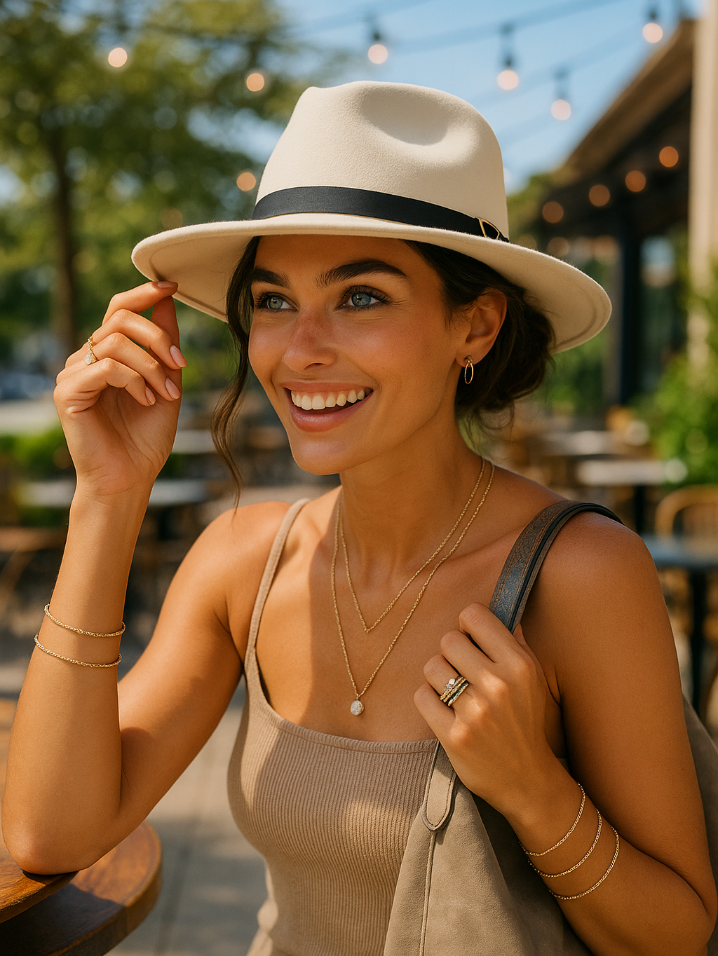 But we’re more than just jewelry. We also offer a curated collection of stylish bags and hats, perfect for complementing your look and making every outfit uniquely yours.