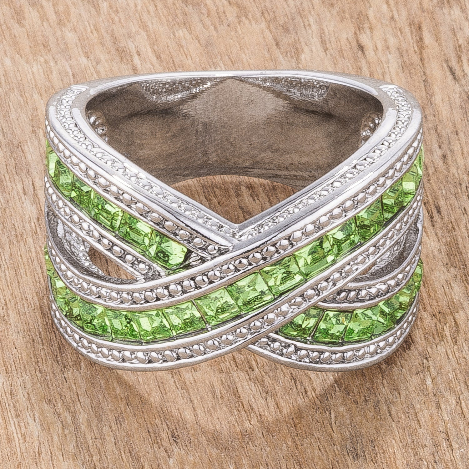 Green hues consume this pink fashion band making it luster for any occasion. Our genuine rhodium finish is achieved using an electroplating process that coats the item with heavy layers of rhodium a close cousin to platinum which gives our jewelry a platinum luster.