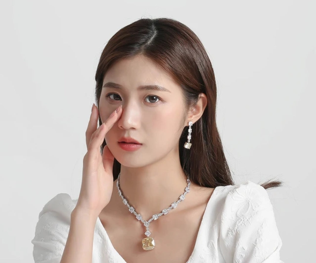 Versatility: Ideal for formal events, galas, or as a standout piece for evening wear, this exquisite necklace adds a touch of glamour to any outfit. Its radiant design and impeccable craftsmanship ensure that it complements any ensemble, making it a must-have addition to your jewelry collection.