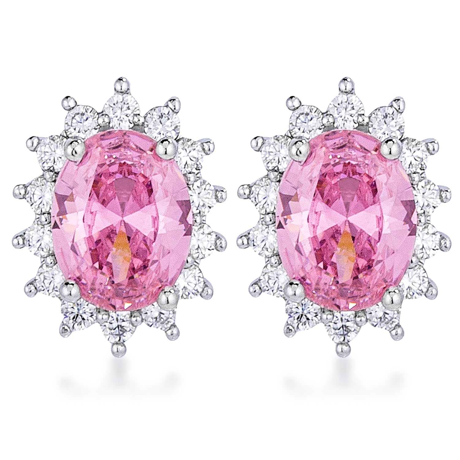 Rhodium Plated Pink Petite Royal Oval Earrings, designed in the United States especially for Women