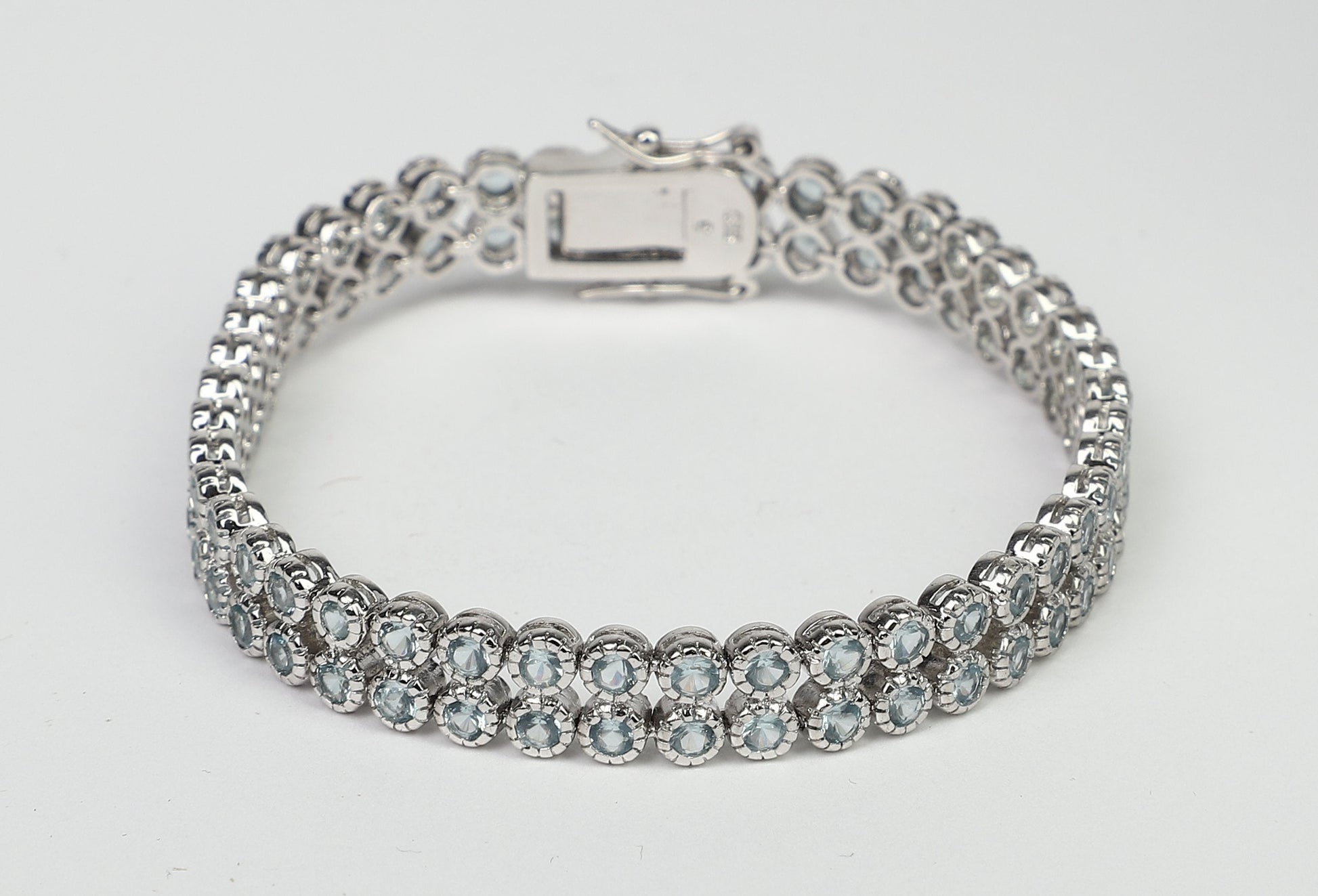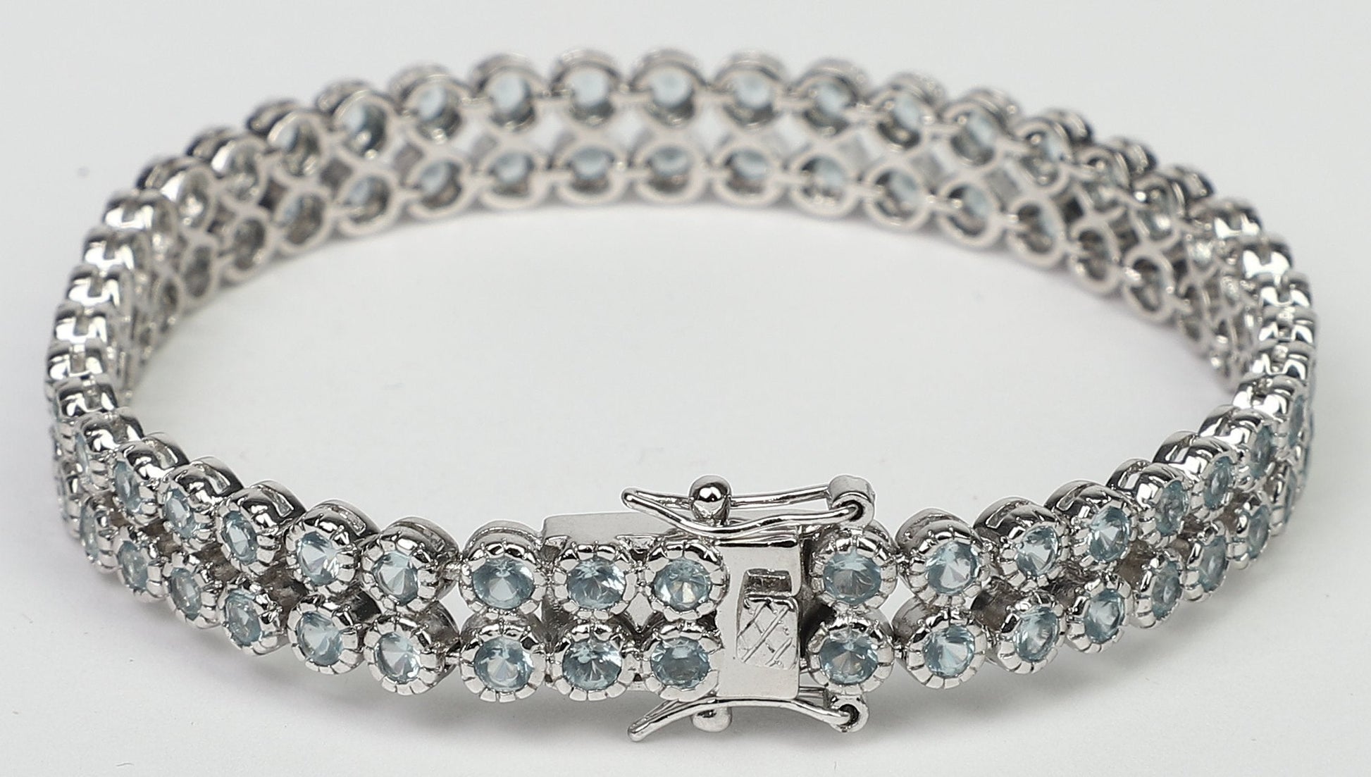 Stunning Two Rows Color Cubic Zirconia Sterling Silver with double safety lock Bracelet.