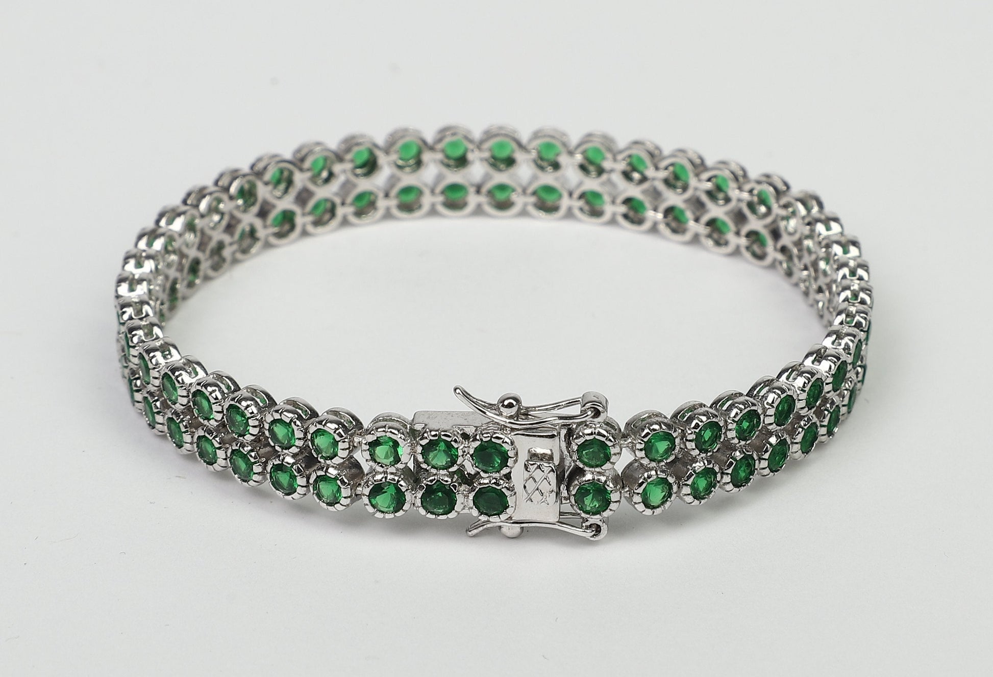 Stunning Two Rows of Colored Cubic Zirconia Sterling Silver with Double Safety Lock Bracelet